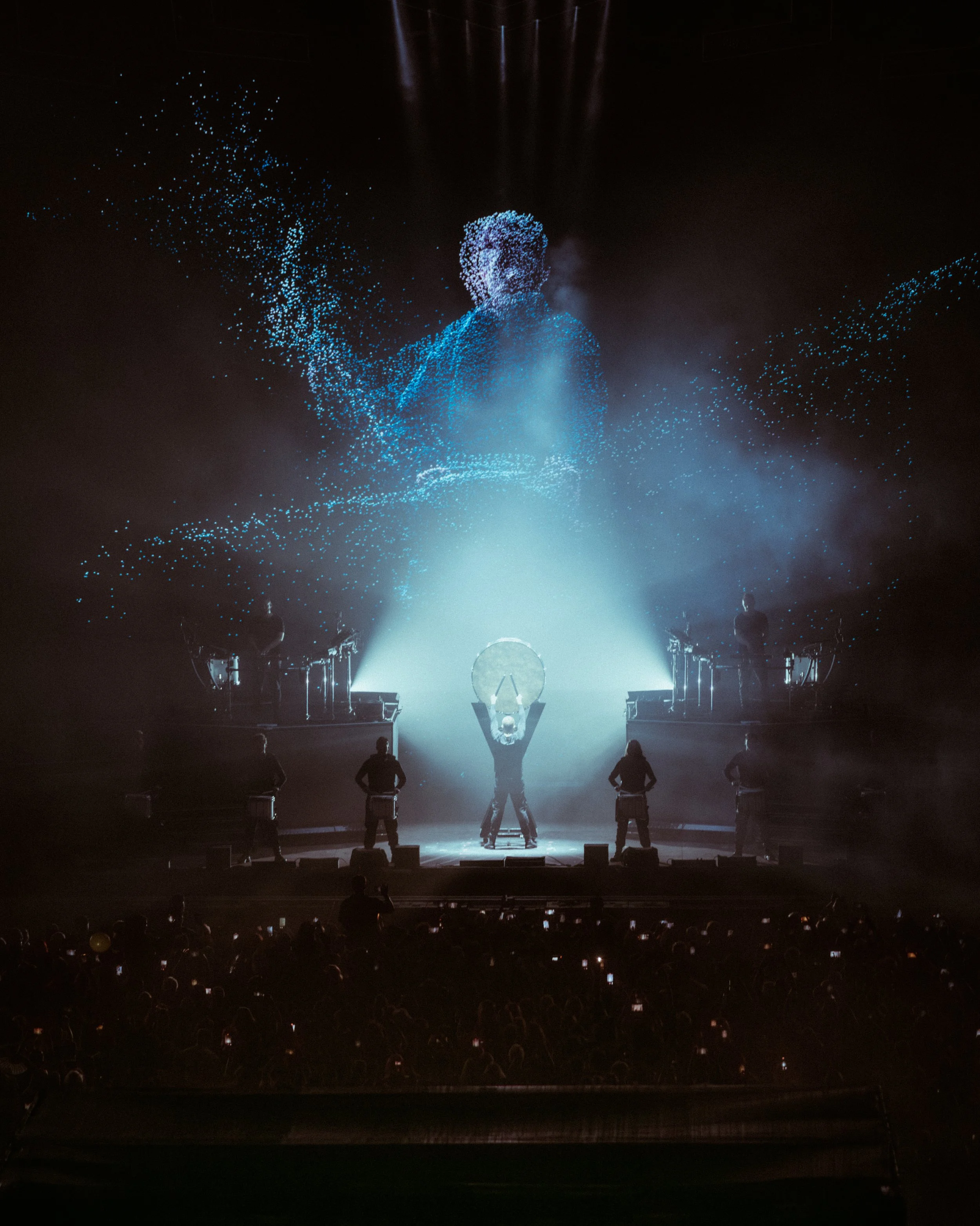 Rather than treating the stage as a simple platform for performance, their productions operate more like fully designed environments. Custom lighting architectures, live percussion sections, synchronized visual storytelling, and cinematic pacing transform the concert into something closer to a theatrical experience.